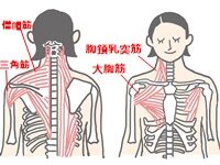 肩が前に巻き込むと 大胸筋、三角筋が収縮
